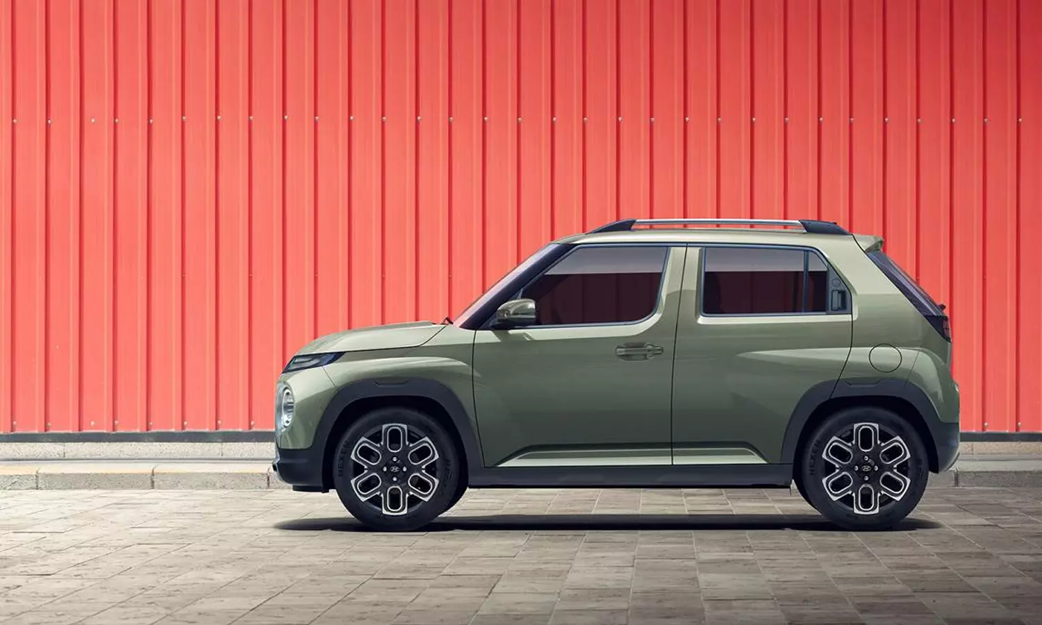 വാഹനത്തിന്റെ സൈഡ് പ്രൊഫൈലിൽ വലിയ വീൽ ആർച്ചുകൾ കാണാൻ സാധിക്കും. അതുവഴി ഇതൊരു എസ്.യു.വിയാണെന്ന് ഹ്യുണ്ടായി കുറച്ചുകൂടി വ്യക്തമാക്കുന്നു. എ-പില്ലർ ബ്ലാക്കെൻ ചെയ്യുകയും ബി-പില്ലർ ബോഡി കളറിലുമാണ് നിർമിച്ചിരിക്കുന്നത്. പിറകിലെ ഡോർ ഹാൻഡിൽ സി-പില്ലറിലാണ് ഘടിപ്പിട്ടുള്ളത്. ഇരട്ട നിറത്തിലുള്ള അലോയ് വീലും കാസ്പറിൽ ലഭ്യമാകും.