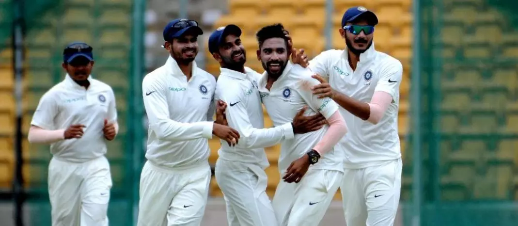 |ദക്ഷിണാഫ്രിക്കന് എ ടീമിനെതിരായ ചതുര്ദിന ക്രിക്കറ്റ് ടെസ്റ്റില് ഇന്ത്യന് എക്ക് തട്ടുതകര്പ്പന് ജയം. ഇന്ത്യയുടെ ഭാവി ടീമില് സ്ഥിരസാന്നിധ്യമാവാന് തങ്ങളെന്തുകൊണ്ടും അര്ഹരാണെന്ന് തെളിയിക്കുന്ന പ്രകടനമായിരുന്നു എ ടീമിന്റേത്. ഇന്നിങ്സിനും 30 റണ്സിനുമായിരുന്നു ഇന്ത്യയുടെ ജയം. ബംഗളൂരുവിലായിരുന്നു മത്സരം. ഇരട്ട സെഞ്ച്വറിയുമായി മായങ്ക് അഗര്വാള് പത്ത് വിക്കറ്റ് നേട്ടവുമായി പേസര് മുഹമ്മദ് സിറാജ് എന്നിവരാണ് ഇന്ത്യയുടെ നിരയില് അല്ഭുത പ്രകടനം പുറത്തെടുത്തത്. രണ്ട് ഇന്നിങ്സിലും കൂടിയായിരുന്നു സിറാജിന്റെ പത്ത് വിക്കറ്റ് പ്രകടനം. ആദ്യ ഇന്നിങ്സിലായിരുന്നു മായങ്ക് അഗര്വാളിന്റെ ഡബിള് സെഞ്ച്വറി.