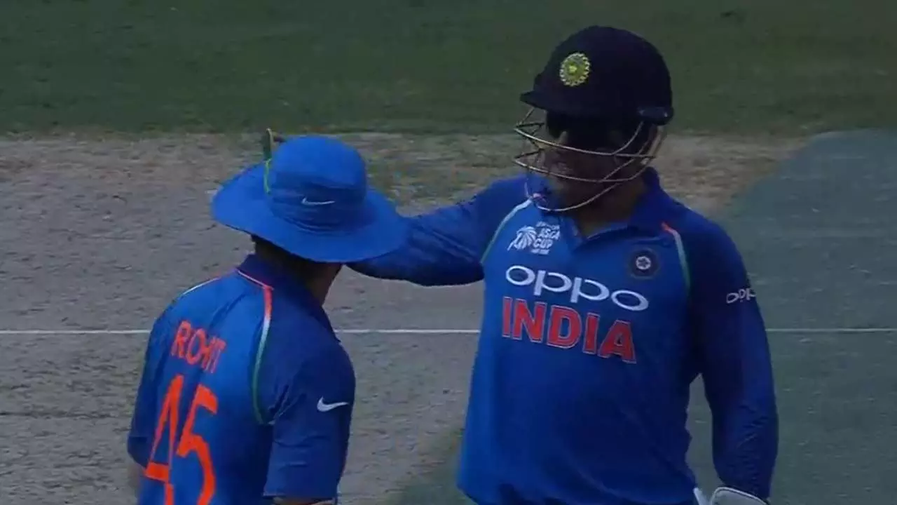 |ഒമ്പതാം ഓവറിലെ മൂന്നാം പന്തിന് മുമ്പ് ധോണി ക്യാപ്റ്റന് രോഹിത് ശര്മ്മക്കടുത്തെത്തി. സ്ക്വയര് ലെഗില് ശിഖര് ധവാനെ നിര്ത്താനുള്ള ധോണിയുടെ നിര്ദ്ദേശം രോഹിത് ശര്മ്മ അനുസരിച്ചു.
