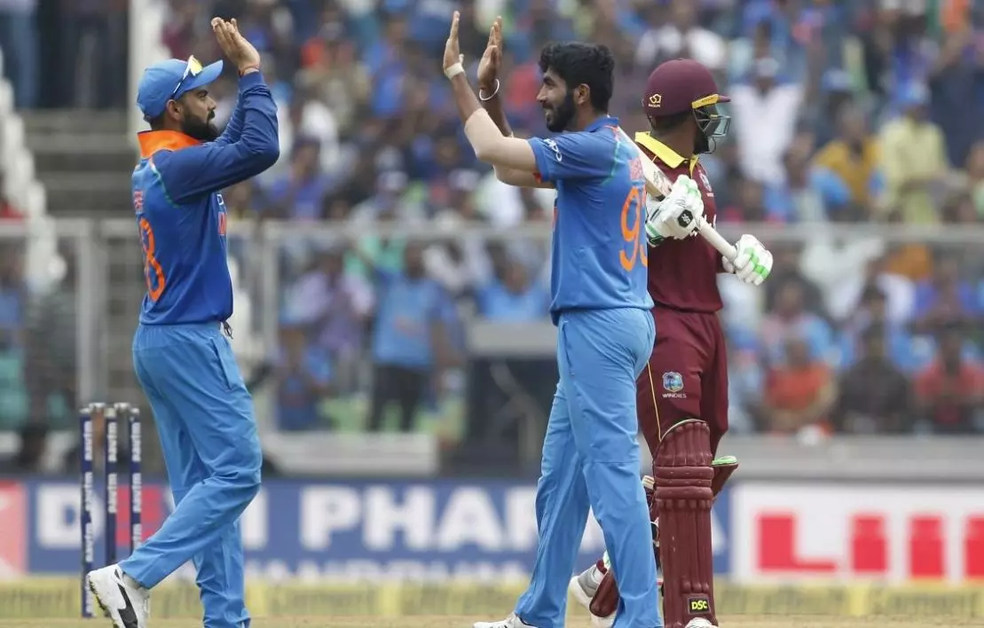 ടോസ് നേടി ബാറ്റിങ് തെരഞ്ഞെടുത്ത വിന്ഡീസിന്റെ തുടക്കം തന്നെ തകര്ച്ചയോടെയായിരുന്നു. ടീം സ്കോര് ഒന്നില് നില്ക്കെ തന്നെ ആദ്യ വിക്കറ്റ് നഷ്ടമായി. രണ്ടാം വിക്കറ്റ് നഷ്ടമായത് ടീം സ്കോര് രണ്ടില് നില്ക്കുമ്പോഴും. മത്സരത്തിലെ നാലാം പന്തില് ആദ്യ വിക്കറ്റ് വീഴ്ത്തി ഭുവനേശ്വര് കുമാറാണ് വിന്ഡീസിനെ ആദ്യം ഞെട്ടിച്ചത്. റണ്ണെടുക്കും മുമ്പ് ഓപണര് പവലിനെ ഭുവി ധോണിയുടെ കൈകളിലെത്തിക്കുകയാ യിരുന്നു. രണ്ടാം ഓവറിലെ നാലാം പന്തില് ഹോപിന്റെ വിക്കറ്റ് തെറിപ്പിച്ച് ബുംറ വീണ്ടും വിന്ഡീസിനെ കുഴക്കി.