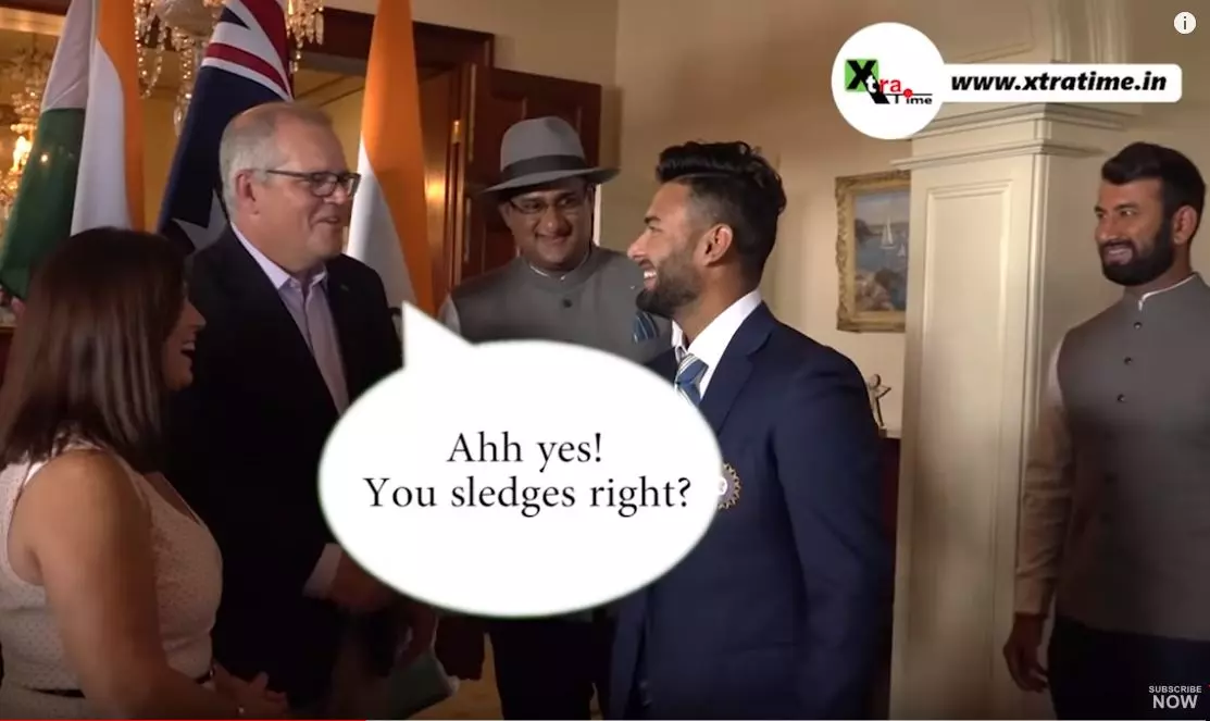 |എതിര്ടീമായ ആസ്ട്രേലിയയുടെ പ്രധാനമന്ത്രി തന്നെ അങ്ങനെ പറഞ്ഞപ്പോഴുള്ള ചളിപ്പ് ചിരികൊണ്ട് മറക്കാന് ശ്രമിച്ച് ഋഷഭ് പന്ത് നിന്നപ്പോള് അദ്ദേഹം മറ്റൊന്നു കൂടികൂട്ടിച്ചേര്ത്തു