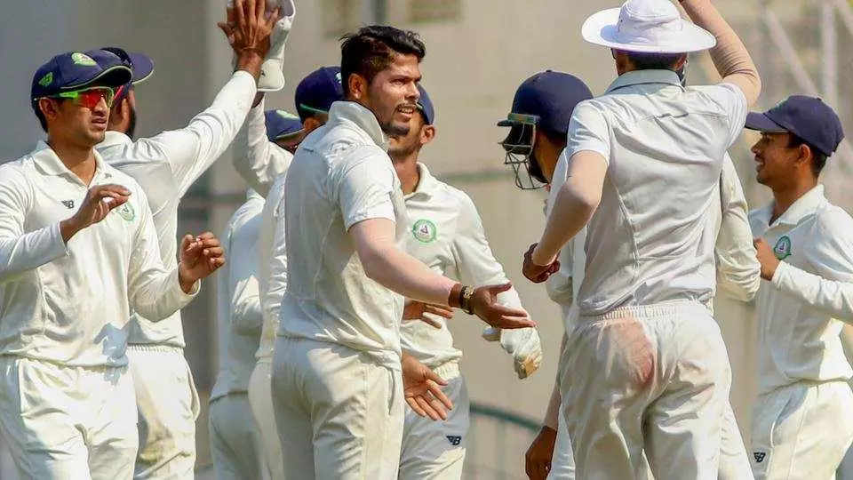 താരതമ്യേന ചെറിയ വിജയലക്ഷ്യമായ 206 റണ്സ് തേടിയിറങ്ങിയ സൗരാഷ്ട്ര ബാറ്റ്സ്മാന്മാര് വിദര്ഭയുടെ ബൗളര്മാര്ക്ക് മുന്നില് തകര്ന്നടിയുകയായിരുന്നു. മൂന്നാമനായിറങ്ങി എട്ടാം വിക്കറ്റു വരെ പൊരുതിയ വിശ്വരാജ് ജഡേജ(52) മാത്രമായിരുന്നു ചെറുത്തു നിന്നത്.