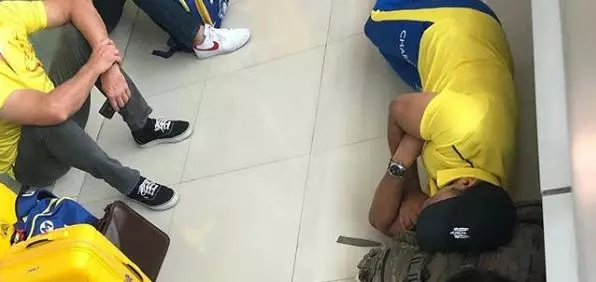 ലഗേജ് തലയിണയാക്കി തറയില് കിടന്നുറങ്ങി ധോണി