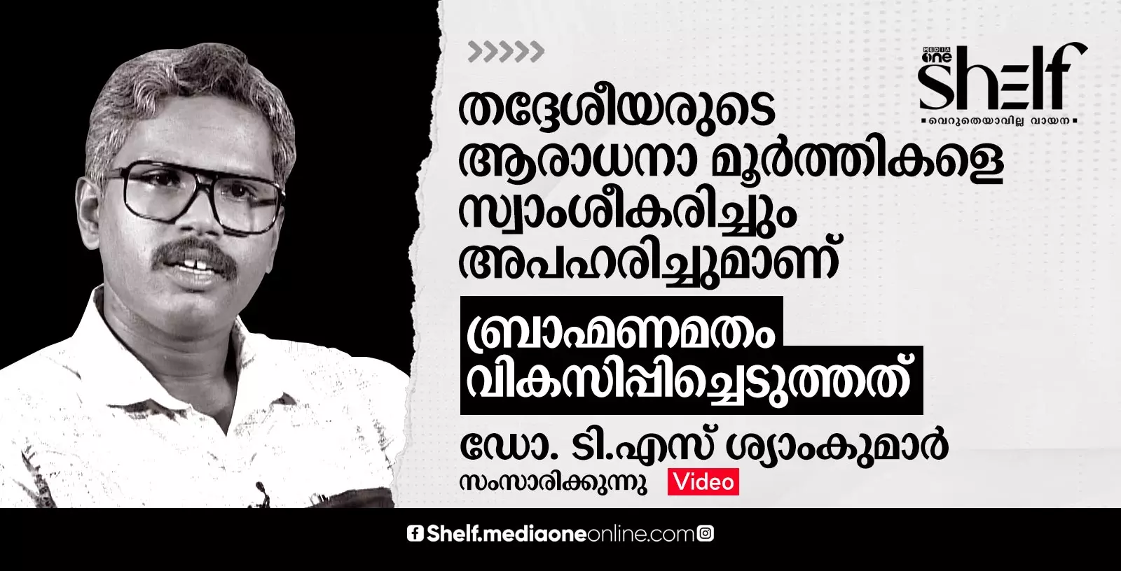 തദ്ദേശീയരുടെ ആരാധനാ മൂര്ത്തികളെ സ്വാംശീകരിച്ചും അപഹരിച്ചുമാണ് ബ്രാഹ്മണമതം വികസിപ്പിച്ചെടുത്തത് - ഡോ. ടി.എസ് ശ്യാംകുമാര് സംസാരിക്കുന്നു.