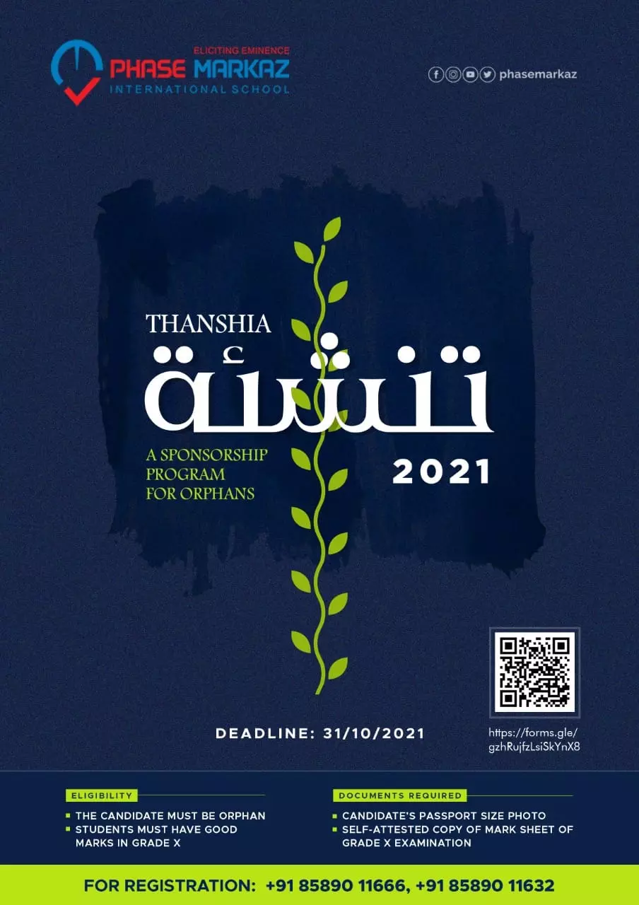 |പിതാവ് ജീവിച്ചിരിപ്പില്ലാത്ത വിദ്യാര്ത്ഥികള്ക്ക് സ്കോളര്ഷിപ്പോടെ ഹയര്സെക്കണ്ടറി പഠനത്തിനുള്ള അവസരമാണ് ഫെയ്സ് മര്ക്കസ് ഇൻറർനാഷണൽ സ്കൂൾ ഒരുക്കിയിരിക്കുന്നത്.