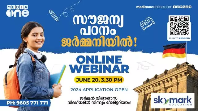2024 അക്കാദമിക വർഷത്തിൽ ജർമനിയിൽ പഠിക്കാനുള്ള അപേക്ഷ ക്ഷണിച്ചിരിക്കുകയാണ്. എന്നാൽ, എങ്ങനെ സ്റ്റൈപെന്റോടെ പഠിക്കാം, ജർമനിയിൽ പഠിക്കാൻ ജർമൻ ഭാഷ അറിയണമെന്ന് നിർബന്ധമുണ്ടോ, എ1 ലെവൽ മാത്രം പാസായാൽ ജർമനിയിൽ പഠിക്കാൻ സാധിക്കുമോ തുടങ്ങി സാമ്പത്തിക വിവരങ്ങൾ വരെ അറിഞ്ഞ് വേണം വിദേശ വിദ്യാഭ്യാസം തെരഞ്ഞെടുക്കാൻ. ഇതിനായി വിദ്യാർഥികളെ സഹായിക്കുകയാണ് മീഡിയവൺ, സ്കൈമാർക്കുമായി ചേർന്ന് നടത്തുന്ന 'സൗജന്യ പഠനം ജർമനിയിൽ' ഓൺലൈൻ വെബിനാർ.