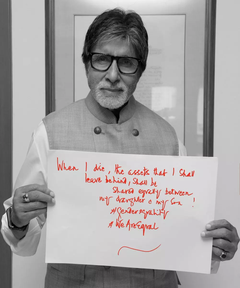 |ലോക വനിതാ ദിനം അടുത്തിരിക്കെയാണ് ലിംഗ സമത്വത്തിലൂന്നിയുള്ള ബച്ചന്റെ ട്വീറ്റ്. മരിക്കുന്പോള് താന് ഇവിടെ അവശേഷിപ്പിക്കുന്ന സ്വത്തുക്കള് മകനും മകള്ക്കും തുല്യമായി വീതിക്കണമെന്ന് എഴുതിയ പ്ലക്കാര്ഡുമായി ബച്ചന് നില്ക്കുന്ന ഫോട്ടോയും ഇതിനോടൊപ്പമുണ്ട്.