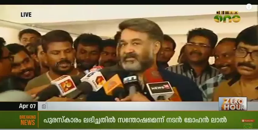 |അഭിനയത്തിന് പ്രത്യേക ജൂറി പരാമര്ശം നേടിയതില് വലിയ സന്തോഷമുണ്ടെന്ന് മോഹന്ലാല്.