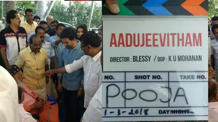 ആരാധകര് ആകാംക്ഷയോടെ കാത്തിരിക്കുന്ന പൃഥ്വിരാജ് ചിത്രം ആടുജീവിതത്തിന്റെ പൂജ കഴിഞ്ഞ് ചിത്രീകരണം തുടങ്ങി. ബെന്യാമിന്റെ ആടുജീവിതം എന്ന നോവലിനെ ആധാരമാക്കി ബ്ലസി ഒരുക്കുന്ന ചിത്രമാണിത്.