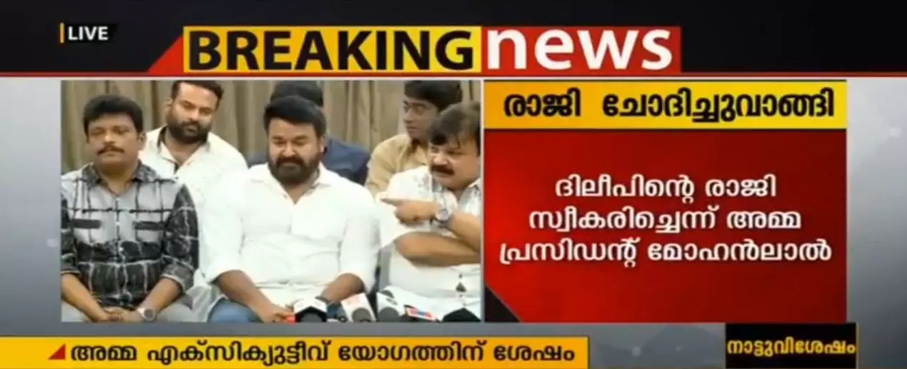 ദിലീപിന്റെ രാജി അമ്മ ചോദിച്ചു വാങ്ങിയെതെന്ന് മോഹൻലാൽ