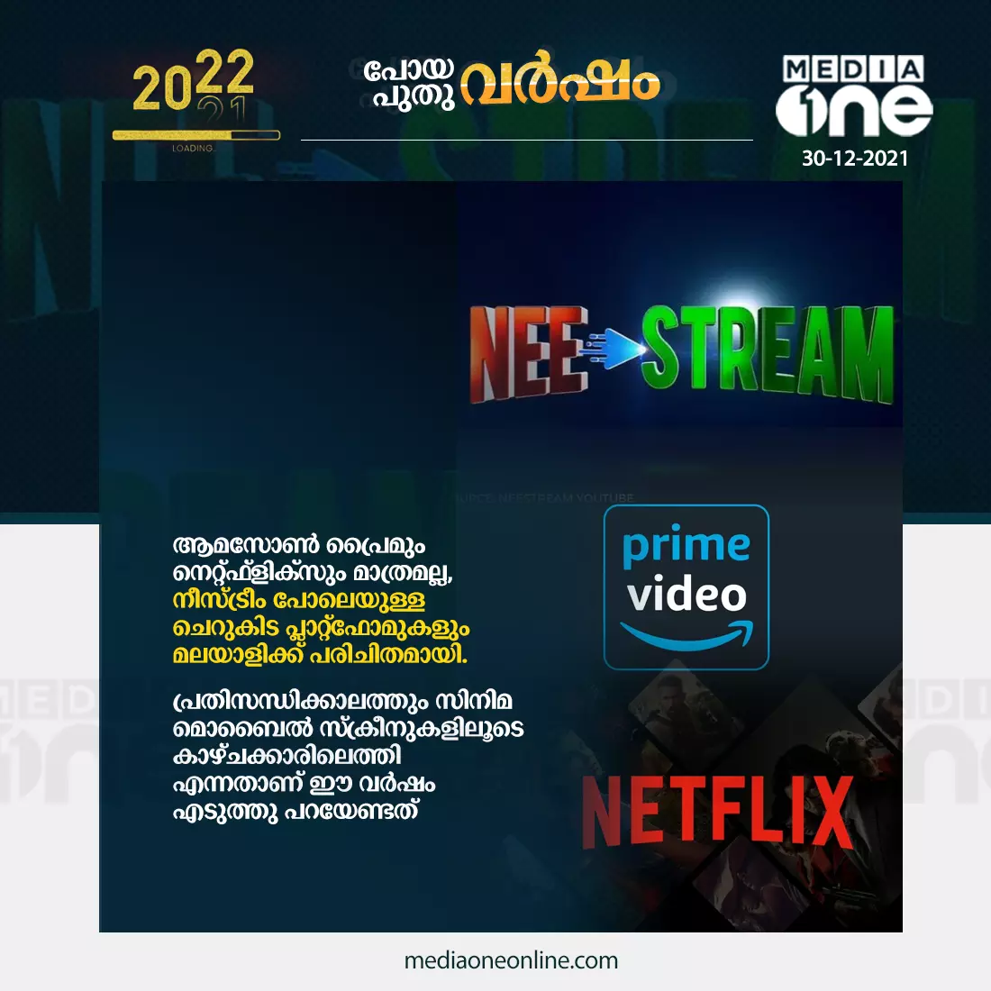 മലയാള സിനിമയ്ക്ക്, കോവിഡ് മഹാമാരിയുണ്ടാക്കിയ വെല്ലുവിളി അവസരമാക്കി മാറ്റിയ വർഷമാണ് 2021. ഒ.ടി.ടി പ്ലാറ്റ്ഫോമുകൾ അരങ്ങുവാണ വർഷം. ആമസോൺ പ്രൈമും നെറ്റ്ഫ്ളിക്സും മാത്രമല്ല, നീസ്ട്രീം പോലെയുള്ള ചെറുകിട പ്ലാറ്റ്ഫോമുകളും മലയാളിക്ക് പരിചിതമായി. പ്രതിസന്ധിക്കാലത്തും സിനിമ മൊബൈൽ സ്ക്രീനുകളിലൂടെ കാഴ്ചക്കാരിലെത്തി എന്നതാണ് ഈ വർഷം എടുത്തു പറയേണ്ടത്. തിയേറ്റർ റിലീസുകൾക്ക് ശേഷം സിനിമ ഒ.ടി.ടിയിലെത്തുന്നതും പതിവായി. ഒ.ടി.ടി റിലീസുമായി ബന്ധപ്പെട്ട വിവാദങ്ങൾക്കും സിനിമാ ലോകം സാക്ഷിയായി. പ്രിയദർശൻ സംവിധാനം ചെയ്ത ചിത്രം മരക്കാർ ഒടിടി-തിയറ്റർ ചർച്ചയ്ക്ക് ചൂടു പകർന്നത്.