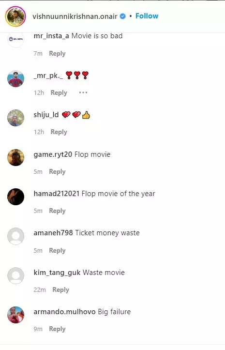 ഒരു ചെറിയ പടമാണെങ്കിൽ കൂടി തിയേറ്ററിൽ ആളെ കയറ്റാതിരിക്കാനുള്ള അന്താരാഷ്ട്ര നാടകമായിട്ടാണ് കണക്കാക്കാനാവുകയെന്ന് വിഷ്ണു ഫേസ് ബുക്കില് കുറിച്ചു. ടീസറിലൂടെയും ട്രെയിലറിലൂടെയും കുടുംബങ്ങൾക്ക് ഇടയിൽ പോലും തിയേറ്ററിൽ പോയി കാണേണ്ട ഒരു നല്ല ചിത്രമെന്ന അഭിപ്രായം ഉയർന്ന് നിൽക്കുന്ന സമയത്താണ് ഇത്തരം ഭീഷണി. ഒരു ചെറിയ സിനിമയെ തകർക്കുന്നതിലുപരി തിയേറ്റർ വ്യവസായത്തെ തകർക്കുവാനുള്ള ഒരു ലക്ഷ്യമായാണ് ഇതിനെ കാണുന്നതെന്നും വിഷ്ണു കുറിച്ചു.