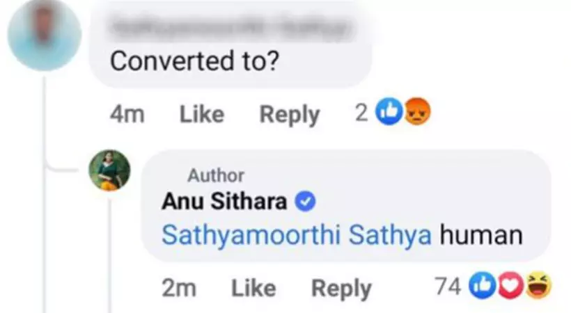 പെരുന്നാള് ആശംസയ്ക്ക് താഴെ വിദ്വേഷ കമന്റ്: മറുപടിയുമായി അനു സിതാര