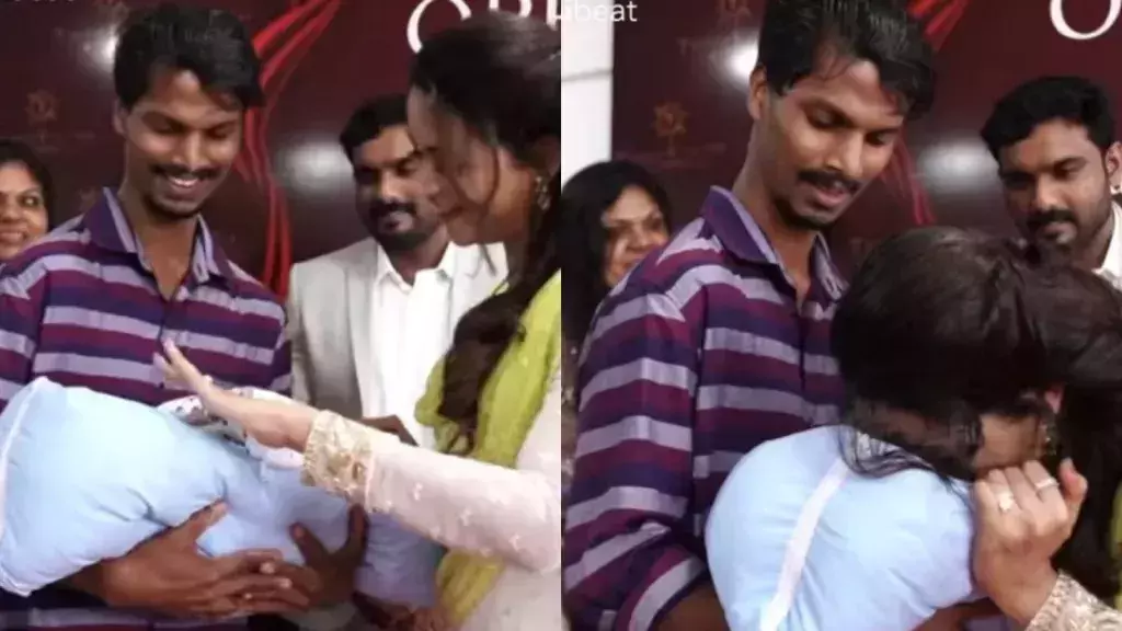 'കുഞ്ഞിന് പേരിടണം'; കൈക്കുഞ്ഞുമായി ദമ്പതികൾ നടി ഭാവനക്കരികിൽ, പേര് ചെവിയിൽ വിളിച്ച് താരം