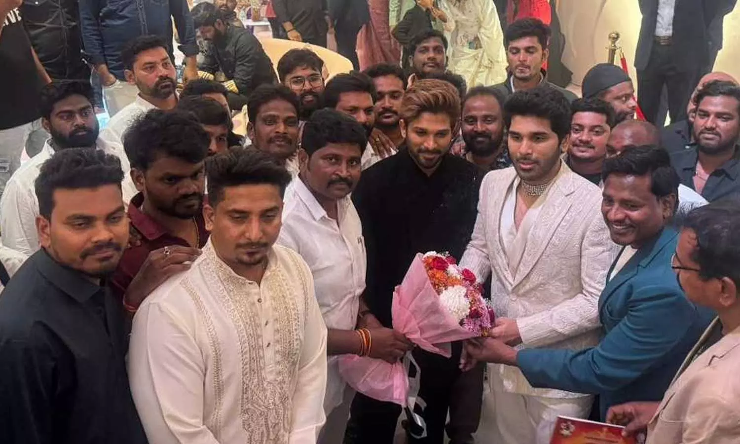 അല്ലു അർജുൻ്റെ സഹോദരൻ അല്ലു സിരീഷിന്റെയും നയനിക റെഡ്ഡിയുടെയും വിവാഹത്തിന് മുമ്പുള്ള സൽക്കാരം അല്ലു സ്റ്റുഡിയോയിൽ നടന്നു. അടുത്ത സുഹൃത്തുക്കളും കുടുംബാംഗങ്ങളും മാത്രം പങ്കെടുത്ത ഒരു അടുപ്പമുള്ള ആഘോഷമായാണ് ഈ പരിപാടി രൂപകൽപ്പന ചെയ്തിരിക്കുന്നത്. ആ സായാഹ്നത്തെ കൂടുതൽ സവിശേഷമാക്കിയത്, തന്റെ ആരാധകരെ ആഘോഷത്തിലേക്ക് ക്ഷണിക്കാനുള്ള അല്ലു അർജുന്റെ തീരുമാനമാണ്. മിക്ക സെലിബ്രിറ്റികളും കുടുംബ ചടങ്ങുകൾ സ്വകാര്യമായി നടത്തുമ്പോൾ, തൻ്റെ ആരാധകർക്ക് ആ സന്തോഷകരമായ അവസരത്തിൽ പങ്കെടുക്കാൻ കഴിയുമെന്ന് നടൻ ഉറപ്പുവരുത്തി.