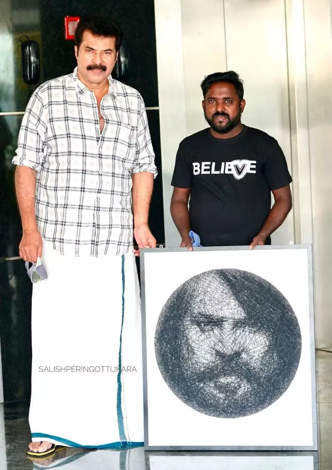 തീവ്രമായ ആഗ്രഹമുണ്ടെങ്കിൽ എല്ലാം നമുക്ക് നേടാൻ കഴിയുമെന്ന് തെളിയിച്ചിരിക്കുകയാണ് അനിൽ ചുണ്ടേൽ. 7000 മീറ്റർ നൂലും 300 ആണികളും ചേർത്ത് വിസ്മയിപ്പിക്കുന്ന സ്നേഹ സമ്മാനമാണ് മമ്മൂക്കക്ക് നേരിട്ട് കൊടുത്തിരിക്കുകയാണ്.