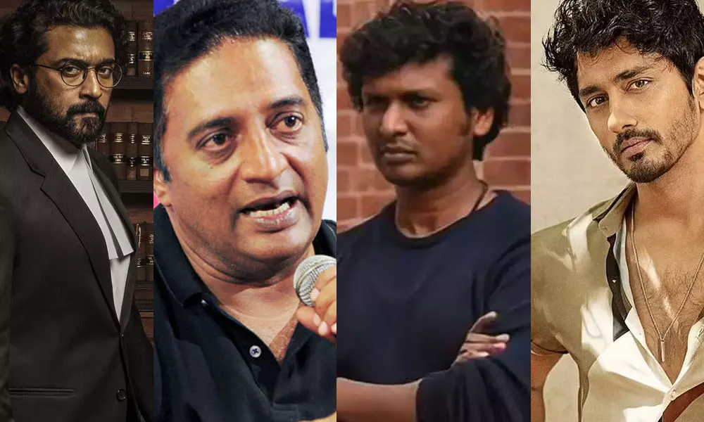 ജയ് ഭീം ചിത്രത്തിനും നടന് സൂര്യക്കുമെതിരായ വണ്ണിയാര് സമുദായത്തിന്റെ ഭീഷണിയില് തമിഴ് സിനിമാ പ്രവര്ത്തകരുടെ പിന്തുണ. നടന്മാരായ പ്രകാശ് രാജ്, സിദ്ധാര്ത്ഥ്, സത്യരാജ്, സംവിധായകരായ വെട്രിമാരന്, പാ രഞ്ജിത്ത്, ലോകേഷ് കനകരാജ്, വെങ്കട്ട് പ്രഭു, സി.എസ് അമൂദന് എന്നിവരാണ് സുര്യക്ക് പിന്തുണയുമായി പരസ്യമായി രംഗത്തുവന്നത്.