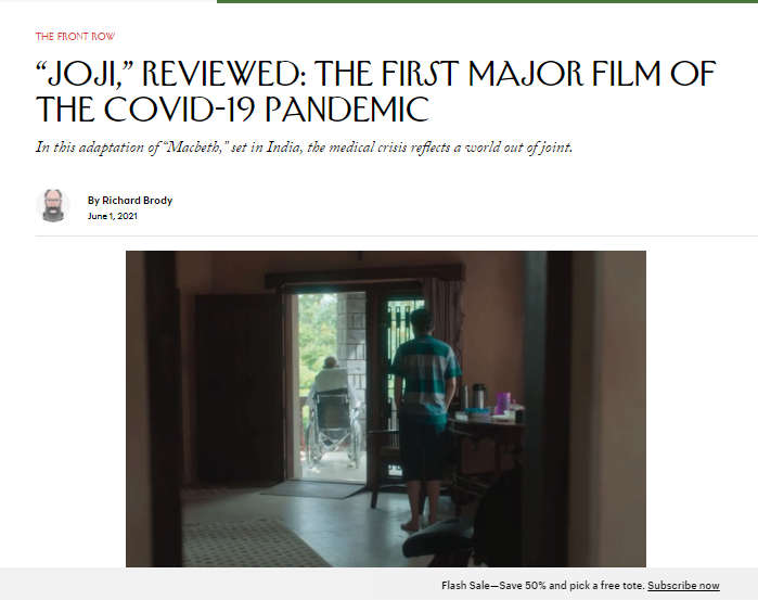 മഹാമാരി കാലത്തെ പല ഹോളിവുഡ് സിനിമകളേക്കാളും മികച്ചത്; ജോജിയെ പുകഴ്ത്തി ദ ന്യൂയോര്ക്കറില് ലേഖനം
