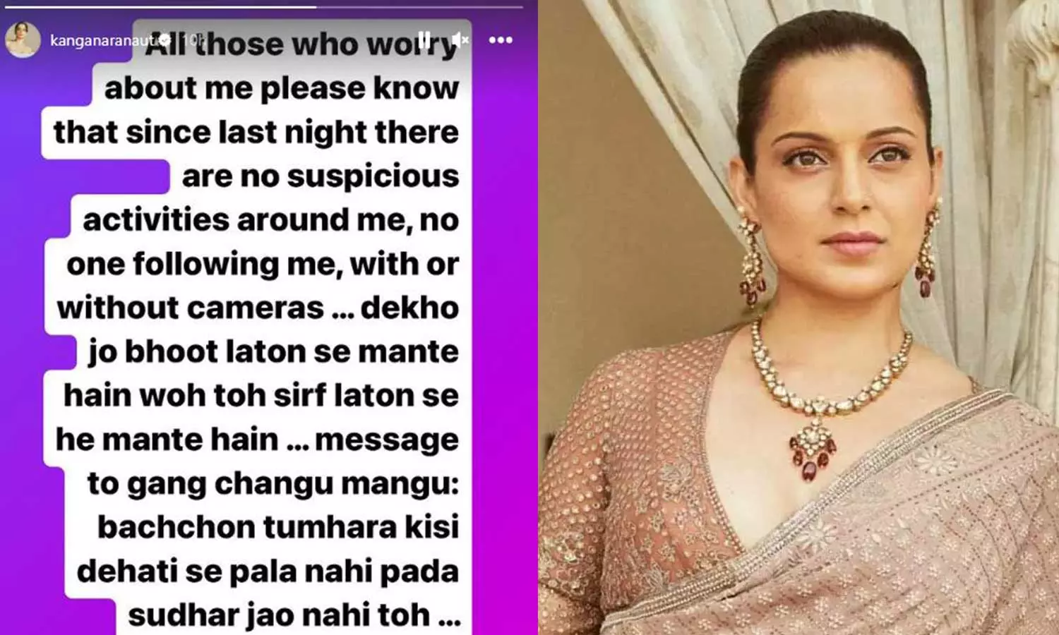 Summary: 'I am warning you to mend your ways, or else I will enter your homes to bash you up'; Kangana Ranaut again threatens Bollywood couple, claims all suspicious activities around her have stopped