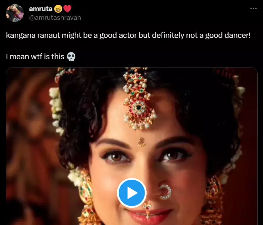 |ഭരതനാട്യമാണ് കങ്കണ ഗാനരംഗത്തില് അവതരിപ്പിക്കുന്നതെങ്കിലും നൃത്തം പഠിച്ചവര് ഇതിനെതിരെ രംഗത്തെത്തിയിരിക്കുകയാണ്