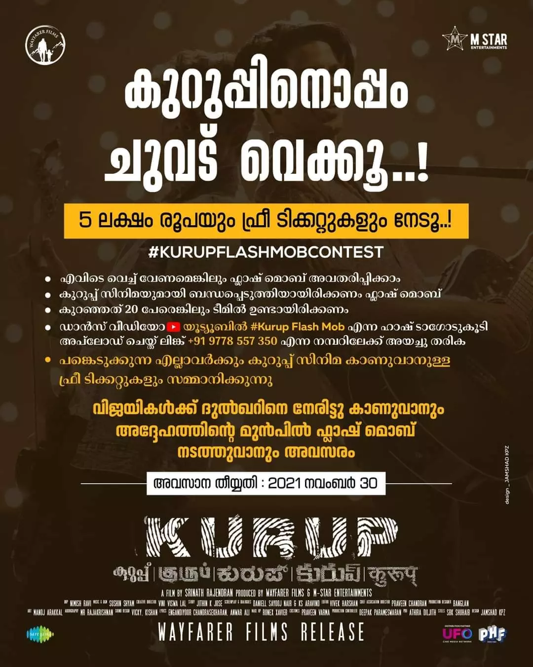 |#KURUPFLASHMOBCONTEST എന്ന ഹാഷ് ടാഗും ഇതിനായി ഒരുക്കിയിട്ടുണ്ട്