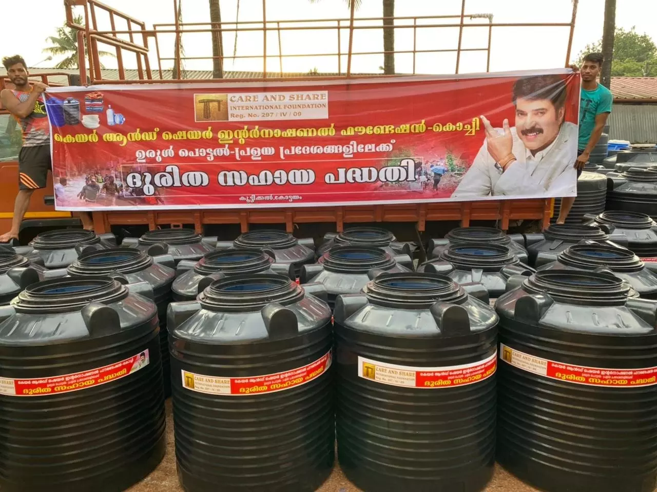കുടിവെള്ളം സംഭരിക്കാനും ഉപയോഗിക്കാനും ഉതകും വിധത്തിൽ 150 പുതിയ ജല സംഭരണികൾ കോയമ്പത്തൂരിൽ നിന്നും കോട്ടയത്ത് എത്തിച്ചിട്ടുണ്ട്. പുരുഷൻമാർക്കും സ്ത്രീകൾക്കും ഉൾപ്പെടെ എല്ലാവർക്കും ലഭിക്കത്തക്ക വിധം പുതിയ വസ്ത്രങ്ങൾ, പുതിയ പാത്രങ്ങൾ, കിടക്കകൾ തുടങ്ങി നിരവധി ഉത്പന്നങ്ങൾ ഉൾപ്പെടുന്ന രണ്ടായിരത്തിൽ അധികം തുണികിറ്റുകൾ വിതരണത്തിന് എത്തിച്ചിട്ടുണ്ട്. കൂടാതെ കാനഡയിലെ മമ്മൂട്ടി ഫാൻസ് ആൻഡ് വെൽഫയർ അസോസിയേഷൻ ഇന്റര്നാഷണൽ പ്രവർത്തകർ 50 ജലസംഭരണികൾ സംഭാവന ചെയ്തിട്ടുണ്ട്.