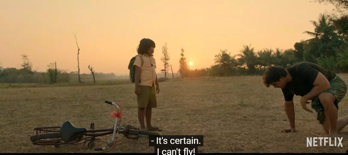 സൂപ്പര് പവര് ലഭിച്ച മുരളി മരുമകനേയും കൂട്ടി തനിക്ക് പറക്കാനുള്ള ശക്തിയുണ്ടോയെന്ന് പരിശോധിക്കാന് ഒരു മരത്തിലേക്ക് വലിഞ്ഞു കയറി മുകളില് നിന്നും ചാടുന്നു. അപ്പോള് ടൊവിനോ പറയുന്ന ഡയലോഗാണ് മറ്റൊരു ചിരി എലമെന്റ്. ''ഈശ്വരാ, വിമാനം ഒന്നും തട്ടരുതേ...'' എന്നാണ്. എന്നാല് പാവം മുരളിക്ക് പറക്കാനാകുന്നില്ല. പക്ഷെ, ഒരു ഫൈറ്റ് സീനില് പക്ഷിയുടെ രൂപം ധരിച്ച്, ചിറകുകളുമായി നായകന് പ്രത്യക്ഷപ്പെടുന്നു. അതും മറ്റൊരു തമാശക്ക് വഴിവെക്കുന്നതായിരിക്കും.