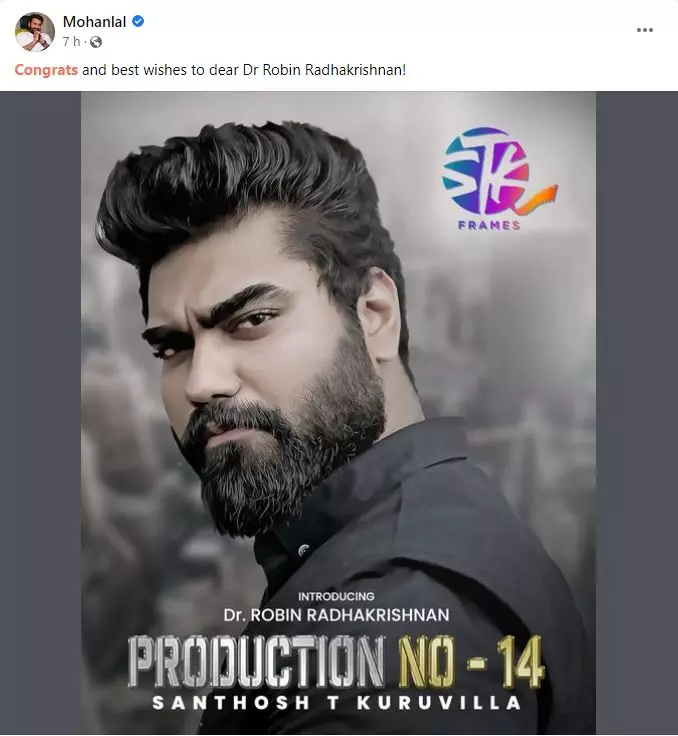 ബിഗ് ബോസ് താരം റോബിൻ നായകനായെത്തുന്നു: ആശംസകളുമായി മോഹൻലാൽ