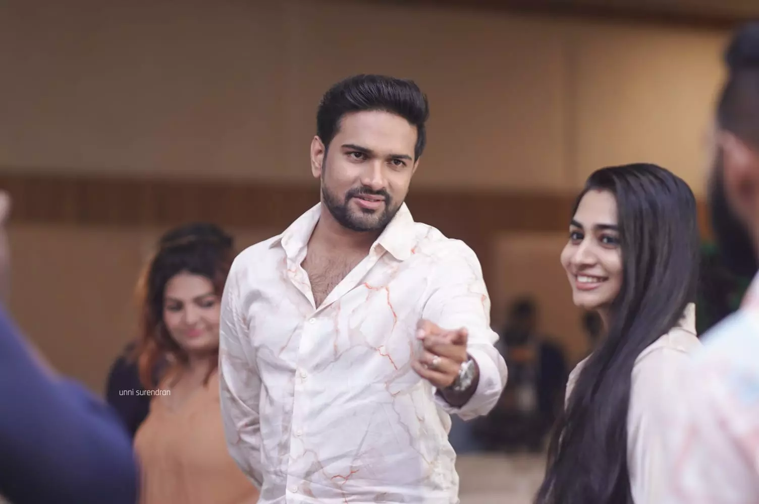 പ്രശസ്ത താരങ്ങളുടെ സാന്നിധ്യത്താൽ ചടങ്ങ് വർണ്ണാഭമായി. ലാൽ, മണിയൻപിള്ള രാജു, ബി ഉണ്ണികൃഷ്ണൻ, ജി. സുരേഷ് കുമാർ, കുഞ്ചൻ, ജഗദീഷ്, സാന്ദ്ര തോമസ്, ബി രാകേഷ്, രഞ്ജിത്ത് രജപുത്ര, സംവിധായകൻ സേതു, കൈലാസ് മേനോൻ, നിരജ്, അനഘ, ഗുരു സോമസുന്ദരം, നിതിയ മേമൻ, സന മൊയ്തൂട്ടി തുടങ്ങിയവർ ചടങ്ങിൽ പങ്കെടുത്തു. ഒരു തുന്നൽക്കാരനായിട്ടാണ് ലാൽ ചിത്രത്തിൽ എത്തുന്നത്. മണിയൻ പിള്ള രാജു, ജഗദീഷ്, നിർമൽ പാലാഴി, സുനിൽ സുഖധ, ശിവജി ഗുരുവായൂർ, രഞ്ജിത് ശേഖർ, അഭിറാം, നീന കുറുപ്പ്, ബാലൻ പാറക്കൽ,മുഹമ്മദ്, ജയകൃഷ്ണൻ, രശ്മി ബോബൻ രാകേഷ്, മധു, ശ്രീരേഖ (വെയിൽ ഫെയിം), ശശി എരഞ്ഞിക്കൽ എന്നിവരാണ് മറ്റ് പ്രധാന കഥാപാത്രങ്ങളെ അവതരിപ്പിക്കുന്നത്.