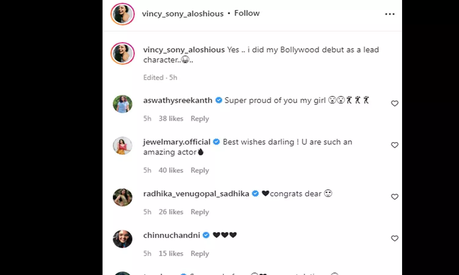 വിൻസി അലോഷ്യസ് ബോളിവുഡിലേക്ക്; നായികയായി അരങ്ങേറ്റം