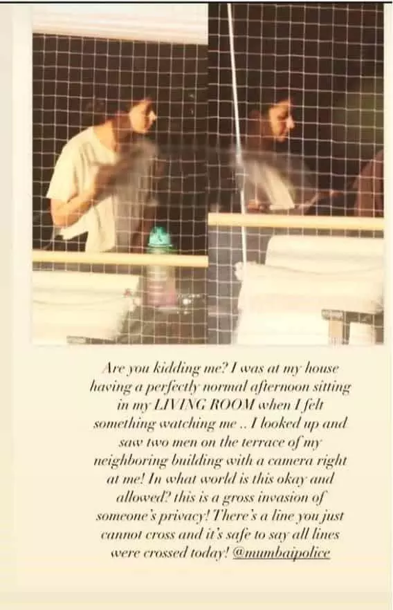 മുംബൈ പൊലീസിനെ ടാഗ് ചെയ്താണ് ആലിയ ഭട്ട് പോസ്റ്റിട്ടത്- "ഞാൻ എന്റെ വീട്ടിലായിരുന്നു. തികച്ചും സാധാരണമായ ദിവസം. എന്റെ വീട്ടിലെ സ്വീകരണമുറിയിൽ ഇരിക്കുകയായിരുന്നു. വീട്ടില് ഇരിക്കുമ്പോള് ആരോ എന്നെ നിരീക്ഷിക്കുന്നതായി തോന്നി. പിന്നാലെ നോക്കിയപ്പോള് അടുത്ത കെട്ടിടത്തിന്റെ ടെറസില് ക്യാമറയുമായി രണ്ട് പേരെ കണ്ടു. ഏത് ലോകത്താണ് ഇത് അനുവദനീയമായിട്ടുള്ളത്? ഇത് ഒരാളുടെ സ്വകാര്യതയിലേക്കുള്ള കടന്നുകയറ്റമാണ്. ലംഘിക്കാന് പാടില്ലാത്ത അതിരുകളുണ്ട്".