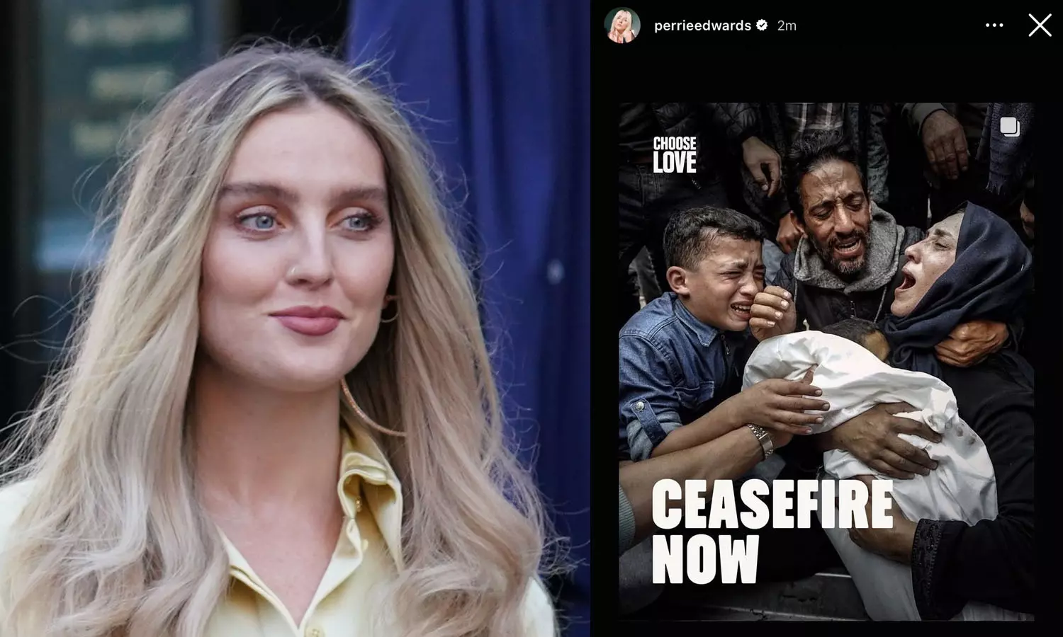 Summary: Perrie Edwards, the UK singer, has appealed for a ceasefire in Gaza.