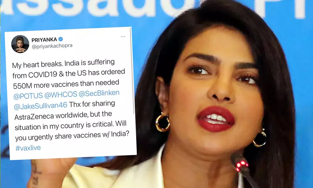 'എന്റെ ഹൃദയം പിളരുന്നു, ഇന്ത്യ ഗുരുതരാവസ്ഥയിലാണ്'; യുഎസിനോട് വാക്സിൻ ചോദിച്ച് നടി പ്രിയങ്ക ചോപ്ര