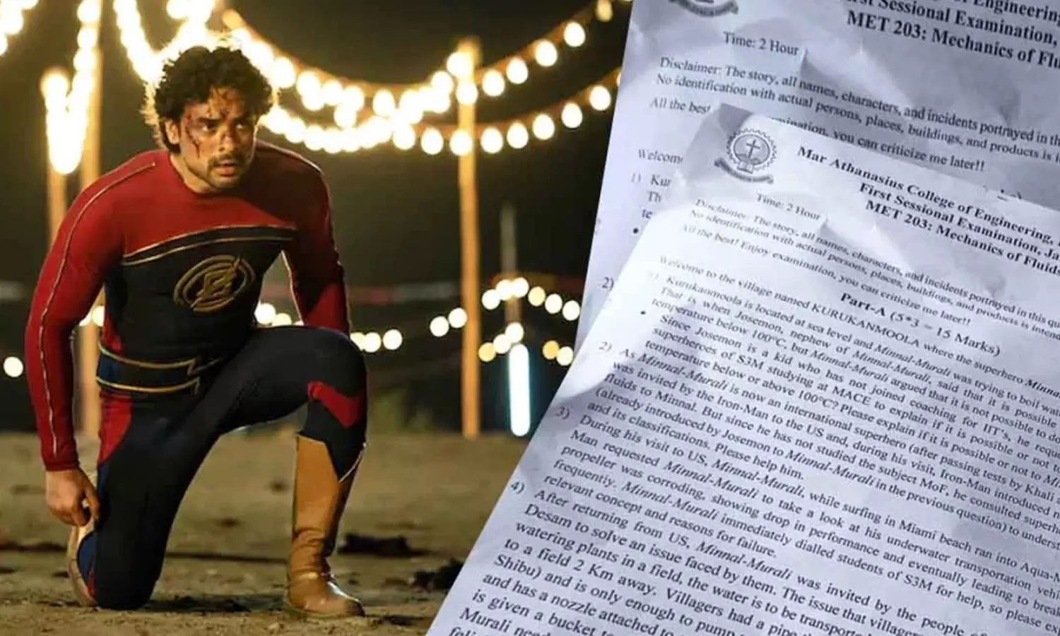 സിനിമയിൽ വിസ്മയം തീർത്തതിന് പിന്നാലെ മിന്നൽ മുരളി ബോളിവുഡ്- ക്രിക്കറ്റ് സ്റ്റാറുകൾക്കിടയിലും തരംഗമായിരുന്നു . ഇപ്പോഴിതാ എഞ്ചിനീയറിങ് കോളേജിലെ ചോദ്യപ്പേപ്പറിലും മിന്നൽ മുരളിയും ജോസ്മോനും സ്ഥാനം പിടിച്ചിരിക്കുന്നു.