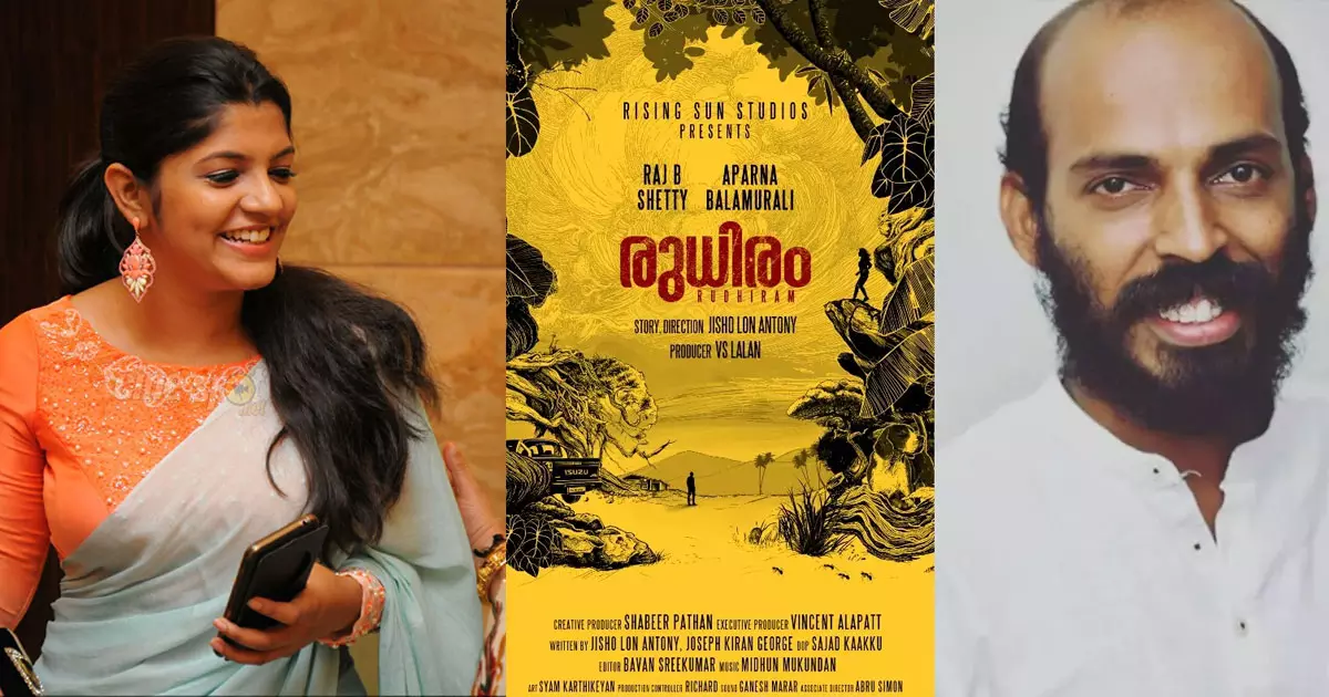രാജ് ബി ഷെട്ടിയോടൊപ്പം ചിത്രത്തില് പ്രധാന വേഷത്തിലെത്തുന്നത് ദേശീയ അവാര്ഡ് ജേതാവായ അപര്ണ ബാലമുരളിയാണ്. നിഗൂഢതയുണര്ത്തുന്ന രുധിരത്തിന്റെ പോസ്റ്ററില് ഒരു കാറും പട്ടിക്കുട്ടിയും പെണ്കുട്ടിയുമാണ് ഒറ്റനോട്ടത്തില് ശ്രദ്ധയില് പെടുക. ഒരു പുരുഷന്റെ അവ്യക്തമായ രൂപവും പോസ്റ്ററിലുണ്ട്. വീണ്ടും നോക്കുമ്പോള് പുതിയ കാഴ്ചകള് തെളിഞ്ഞ് വരുംവിധം പലതും ഒളിപ്പിച്ചിട്ടുണ്ട് പോസ്റ്ററില്.