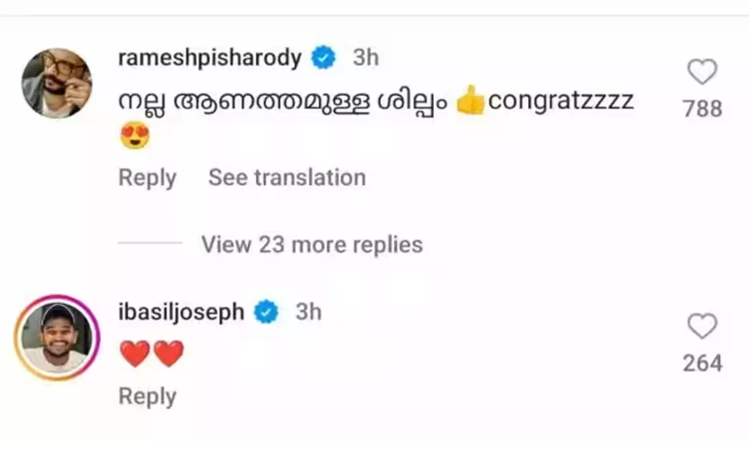 |മികച്ച ഏഷ്യൻ നടനുള്ള പുരസ്കാരം നേടിയ ടൊവിനോ പങ്കുവെച്ച പോസ്റ്റിന് താഴെയാണ് പിഷാരടിയുടെ കമന്റ്