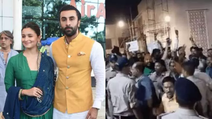 ബോളിവുഡ് താരങ്ങളായ രണ്ബീര് കപ്പൂറിനെയും ആലിയ ഭട്ടിനെയും മധ്യപ്രദേശിലെ ഉജ്ജയിനിലെ മഹാകാളി ക്ഷേത്രത്തില് ബജ്റംഗ്ദള് പ്രവര്ത്തകര് തടഞ്ഞു. ബീഫുമായി ബന്ധപ്പെട്ട പരാമര്ശത്തില് പ്രകോപിതരായാണ് ബജ്റംഗ്ദള് പ്രവര്ത്തകര് വാക്കേറ്റത്തില് ഏര്പ്പെടുകയും തടയുകയും ചെയ്തത്. ബജ്റംഗ്ദള് പ്രവര്ത്തകര് കറുത്ത തുണിയുമായി രണ്ബീറിനും ആലിയക്കുമെതിരെ മുദ്രാവാക്യം വിളിക്കുന്ന വീഡിയോ സമൂഹ മാധ്യമങ്ങളില് വൈറലാണ്. പ്രതിഷേധക്കാര്ക്കെതിരെ പൊലീസ് ചൂരല് പ്രയോഗിക്കുന്നതിന്റെ വീഡിയോകളും ട്വിറ്ററില് പ്രചരിക്കുന്നുണ്ട്. പ്രതിഷേധക്കാര്ക്കെതിരെ ഇന്ത്യന് ശിക്ഷാ നിയമത്തിലെ 353 പ്രകാരം കേസെടുത്തതായി പൊലീസ് അറിയിച്ചു.