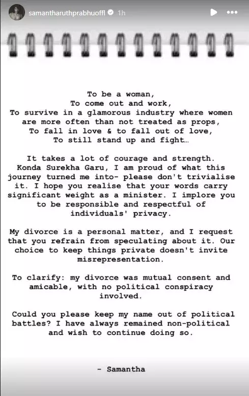 സാമന്തയുടെ കുറിപ്പ്