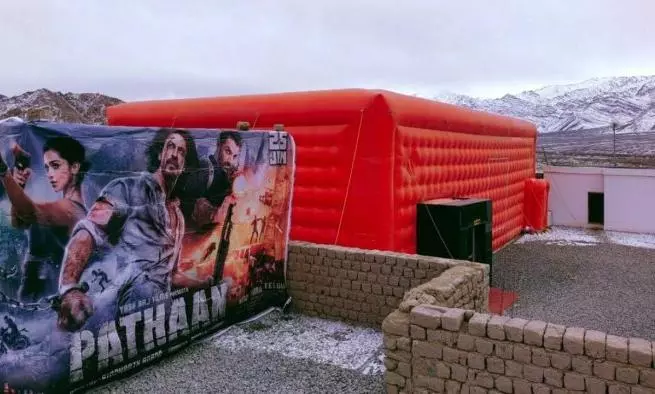 ലഡാക്കിലെ മൈനസ് ഡിഗ്രിയിലും 'പഠാന്' ആവേശം; ലോകത്തെ ഏറ്റവും വലിയ മൊബൈല് തിയറ്ററില് പ്രദര്ശനം