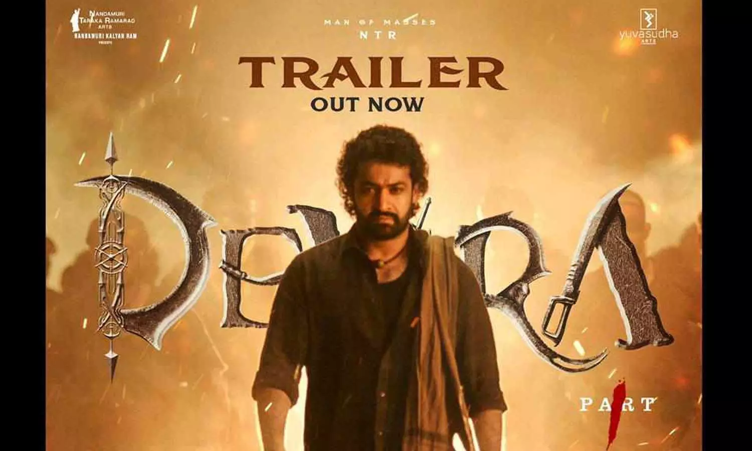 ഹൈദരാബാദ്: എൻ.ടി. രാമ റാവു ജൂനിയറിനെ നായകനാക്കി കൊരട്ടല ശിവ സംവിധാനം ചെയ്യുന്ന 'ദേവര'യുടെ ട്രെയിലർ പുറത്തിറങ്ങി. തകർപ്പൻ ഡയലോകുകളും കിടിലൻ ആക്ഷൻ രംഗങ്ങളും കോർത്തിണക്കി ഒരുക്കിയ ട്രെയിലർ ഗംഭീര ദൃശ്യവിരുന്നാണ് ഉറപ്പ് നൽകുന്നത്. ലോകമെമ്പാടുമുള്ള പ്രേക്ഷകരെ വിസ്മയിപ്പിക്കാൻ ചിത്രത്തിന് സാധിക്കുമെന്ന പ്രതീക്ഷയും ട്രെയിലർ നൽകുന്നുണ്ട്.