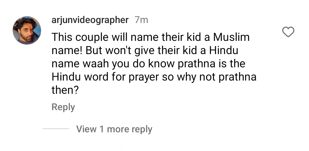 എന്നാൽ കുഞ്ഞിന്റെ പേര് അത്ര രസിക്കാത്ത ചിലരും ഇന്റർനെറ്റിൽ പ്രത്യക്ഷപ്പെട്ടിട്ടുണ്ടായിരുന്നു. കുഞ്ഞിന് പ്രാർഥന എന്ന് തന്നെ പേരിടാമായിരുന്നു എന്നാണ് സോഷ്യൽ മീഡിയയിൽ ഒരു വിഭാഗം പറയുന്നത്.