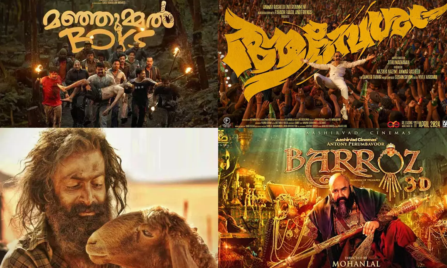 പ്രേക്ഷകനെ ആവേശത്തിലാക്കുന്നതും, കളക്ഷൻ കൊണ്ട് റെക്കോർഡുകൾ കൊയ്തതുമായ ഒട്ടനവധി ചിത്രങ്ങളുമുണ്ട് മലയാളത്തിൽ. അഞ്ച് ചിത്രങ്ങളാണ് ഈ വർഷം മലയാളത്തിൽ നിന്ന് 100 കോടി ക്ലബിൽ ഇടം നേടിയത്. മലയാളത്തിലെ ആദ്യ 200 കോടിക്കും 2024 സാക്ഷ്യം വഹിച്ചു. ചിദംബരം സംവിധാനം ചെയ്ത മഞ്ഞുമ്മൽ ബോയ്സിലൂടെയായിരുന്നു ആ നേട്ടം. സുഹൃത്ത് ബന്ധത്തിൻ്റെ കഥ പറഞ്ഞ് 240 കോടി രൂപക്ക് മുകളിലാണ് ചിത്രം നേടിയത്. രണ്ടാമത് ആടുജീവിതമാണ്, 158 കോടി. ഫഹദിൻ്റെ ആവേശം(156 കോടി), നസ്ലൻ്റെ പ്രേമലു (135 കോടി), ടൊവിനോയുടെ എആർഎം (106 കോടി) എന്നിവയാണ് ഇക്കൊല്ലം 100 കോടിക്ക് മുകളിൽ നേടിയ മറ്റു ചിത്രങ്ങൾ. കിഷ്കിന്ധാ കാണ്ഡത്തിലൂടെ ആസിഫ് അലിക്കും കരിയറിലെ ഏറ്റവും വലിയ ഹിറ്റ് ഈ വർഷം ലഭിച്ചു. 76 കോടിയാണ് ചിത്രം നേടിയത്. ഈ വർഷം പുറത്തിറങ്ങിയതിൽ വർഷങ്ങൾക്കു ശേഷം, ഗുരുവായൂരമ്പലനടയിൽ, വാഴ, ടർബോ, എബ്രഹാം ഓസ്ലർ, അന്വേഷിപ്പിൻ കണ്ടെത്തും, സൂക്ഷ്മദർശിനി, ബൊഗെയ്ൻവില്ല തുടങ്ങിയ ചിത്രങ്ങളും മികച്ച പ്രതികരണമാണ് നേടിയത്. മോളിവുഡിന് ബോക്സ് ഓഫീസിൽ ശക്തമായ ചലനമുണ്ടാക്കാൻ സാധിക്കുമെന്നാണ് ഈ ചിത്രങ്ങളെല്ലാം തെളിയിക്കുന്നത്. ഡിസംബറിൽ റിലീസായ മാർക്കോയും, റൈഫിൾ ക്ലബുമെല്ലാം മികച്ച പ്രതികരണം നേടി കുതിക്കുകയാണ്. ഇക്കൊല്ലത്തെ ആറാമത്തെ 100 കോടി ചിത്രമായി മാർക്കോ മാറുമെന്നാണ് വിലയിരുത്തൽ.