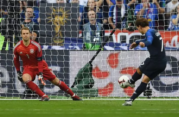 1-0ത്തിന് ആദ്യ പകുതി ജര്മനി സ്വന്തമാക്കിയെങ്കിലും രണ്ടാം പകുതിയില് അന്റോയിന് ഗ്രീസ്മാന്റെ ഇരട്ട ഗോളിലൂടെ ഫ്രാന്സ് മത്സരം പിടിച്ചെടുക്കുകയായിരുന്നു. 62 ആം മിനിറ്റില് സൂപ്പര് ഹെഡറിലൂടെയായിരുന്നു ഗ്രീസ്മാന്റെ ആദ്യ ഊഴം. 80 ആം മിനിറ്റില് പെനാല്റ്റിയിലൂടെ വീണ്ടും ഗ്രീസ്മാന് വല കുലുക്കി.