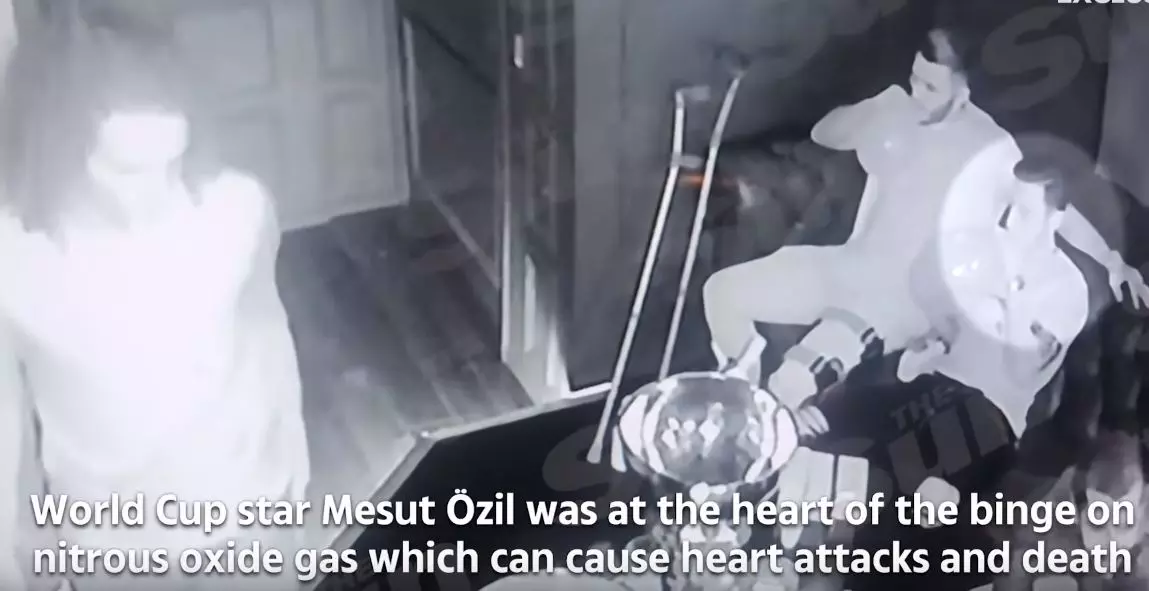 ക്ലബിലെ സിസിടിവി ദൃശ്യങ്ങളാണ് ദ സണ് പുറത്തുവിട്ടത്. പിടിക്കപ്പെട്ടത് ആഴ്സണല് താരങ്ങളാണെങ്കിലും പ്രീമിയര് ലീഗ് ക്ലബുകളിലെ കളിക്കാര്ക്കിടയില് ഇത്തരം പ്രവണതകള് സജീവമാണെന്നും റിപ്പോര്ട്ട് ആരോപിക്കുന്നുണ്ട്. ചിരിവാതകം നിറഞ്ഞ ബലൂണിലെ വാതകം വായിലൂടെ ശ്വസിച്ച ശേഷം ഒസില് ഇരിപ്പിടത്തിലേക്ക് വീഴുന്നതും ചിരിക്കുന്നതും വീഡിയോയിലുണ്ട്. കൂട്ടത്തില് പ്രായം കുറഞ്ഞ 19കാരനായ മറ്റിയോ ഗുണ്ടോസി ഈ ചിരിവാതകം ശ്വസിച്ച് സോഫയിലേക്ക് വീണു കിടക്കുകയാണ്.