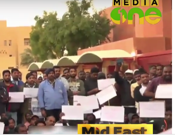 |എംബസ്സി അങ്കണത്തിൽ പ്ലക്കാർഡുകളുമായി നിലയുറപ്പിച്ച തൊഴിലാളികൾക്ക് പറയാനുണ്ടായിരുന്നത് ദുരിതങ്ങളുടെ കണ്ണുനീർ കഥകളായിരുന്നു