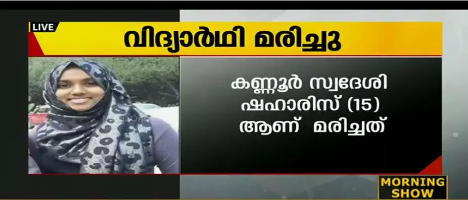 കണ്ണുർ കൂത്തുപറമ്പ് കൈതേരി സ്വദേശി താഹിറിന്റെ മകൾ ഷഹാരിസ് (15) ആണ് മരിച്ചത്.