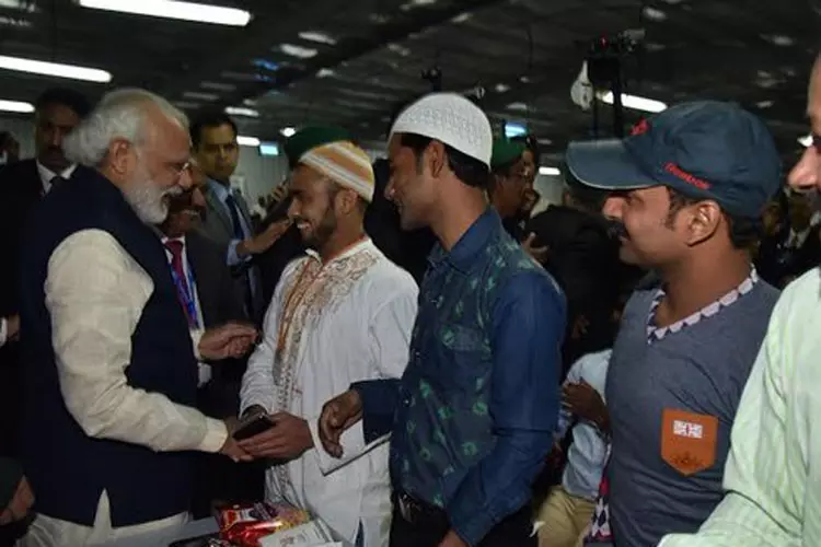 ഇന്ത്യന് അംബാസഡര് അഹ്മദ് ജാവേദ് ചുരുങ്ങിയ വാക്കുകളില് പ്രധാനമന്ത്രിയെ സ്വാഗതം ചെയ്തു. സൗദിയുടെ വിവിധ ഭാഗങ്ങളില് നിന്നത്തെിയ സാമൂഹിക, സാംസ്കാരിക രംഗങ്ങളിലെ പ്രമുഖരും ഇന്ത്യന് എംബസിക്ക് കീഴിലുള്ള സന്നദ്ധ പ്രവര്ത്തകരുമടക്കം ക്ഷണിക്കപ്പെട്ട 700ഓളം പ്രവാസികളാണ് ചടങ്ങില് പങ്കെടുത്തത്. ദേശീയ സുരക്ഷ ഉപദേഷ്ടാവ് അജിത് ദോവലും എംബസി ഉദ്യോഗസ്ഥരും പ്രധാനമന്ത്രിയുടെ ഓഫിസിലെ ഉദ്യോഗസ്ഥരും പരിപാടിക്കെത്തിയിരുന്നു.