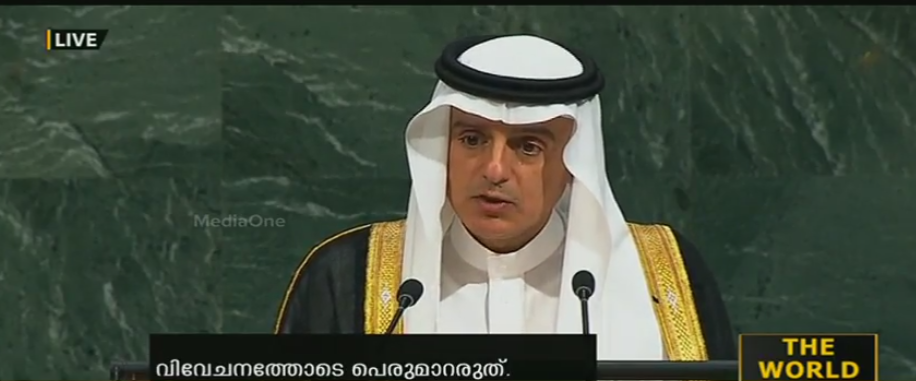 നൂറ് കോടിയോളം രൂപ കഴിഞ്ഞയാഴ്ച മാത്രം റോഹിങ്ക്യകള്ക്ക് സൌദി മന്ത്രി സഭ അനുവദിച്ചു. അവര്ക്കുള്ള സഹായം തുടരും. അന്താരാഷ്ട്ര നിയമം പാലിക്കാന് ഖത്തറിനോട് ലോകരാഷ്ട്രങ്ങളാവശ്യപ്പെടണമെന്നും സൌദി വിദേശ കാര്യ മന്ത്രി പ്രസംഗത്തിനൊടുവില് ആവശ്യപ്പെട്ടു.