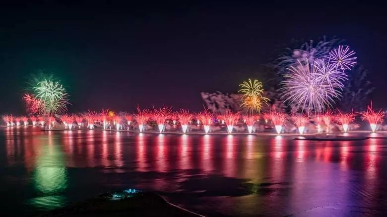 റാസല്ഖൈമ സര്ക്കാരിന്റെ സഹകരണത്തോടെ വിനോദസഞ്ചാര കേന്ദ്രമായ മര്ജാന് ദ്വീപാണ് റെക്കോര്ഡ് കരിമരുന്ന് പ്രയോഗം ഒരുക്കിയത്. 13 കീലോമീറ്റര് നീളത്തില് ആകാശത്ത് വര്ണമഴയൊരുക്കിയതിന് പുറമെ, നാലര കീലോമീറ്റര് നീളത്തില് ഒരുക്കിയ കരിമരുന്ന് ശൃംഖലയും ഗിന്നസ് ബുക്കില് ഇടം പിടിച്ചു.