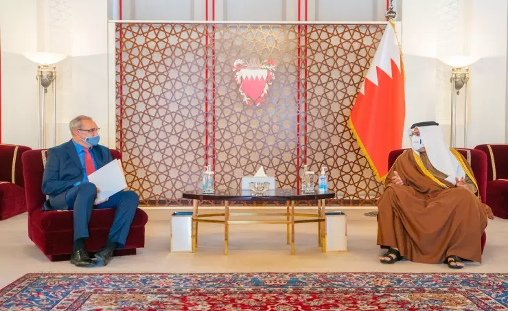 റിഫ പാലസിൽ നടന്ന കൂടിക്കാഴ്ചയിൽ ധനകാര്യ മന്ത്രി ശൈഖ് സൽമാൻ ബിൻ ഖലീഫ ആൽ ഖലീഫയും സന്നിഹിതനായിരുന്നു.